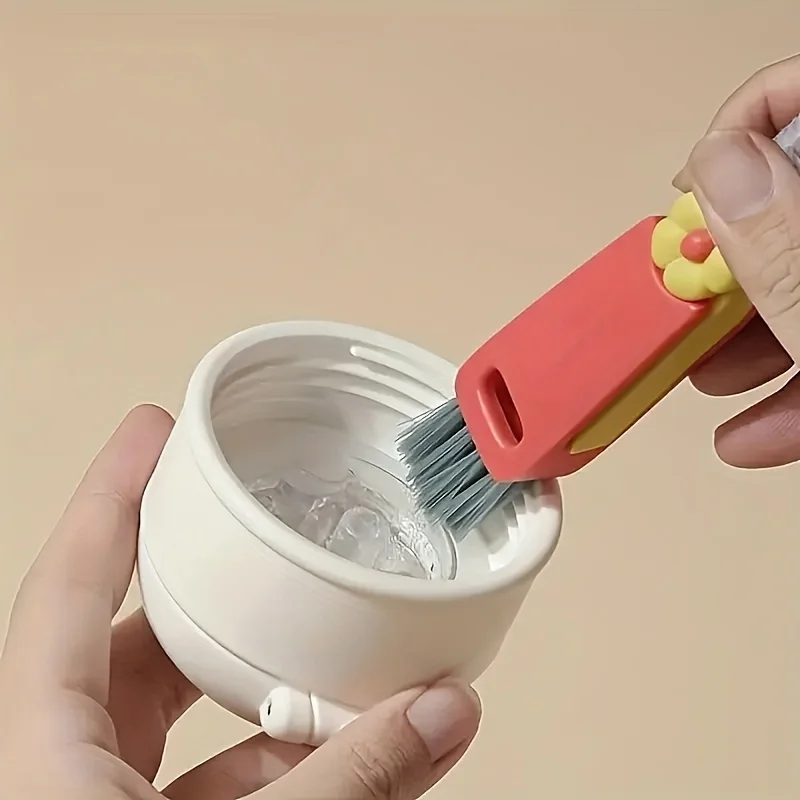 Multifunctional 3 in 1 Cup Cleaning Brushes Rotatable Cup Mouth Brush Bottle Cap Brush Household Groove Gap Cleaning Brush